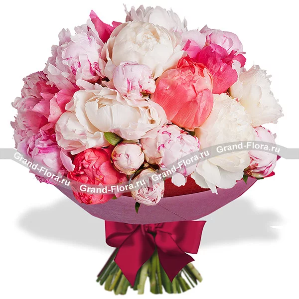 Данный вид товара оформляется за сутки до нужной даты. Цвет пионов может отличаться от картинки. Просьба уточнять информацию у менеджеров нашей компании.